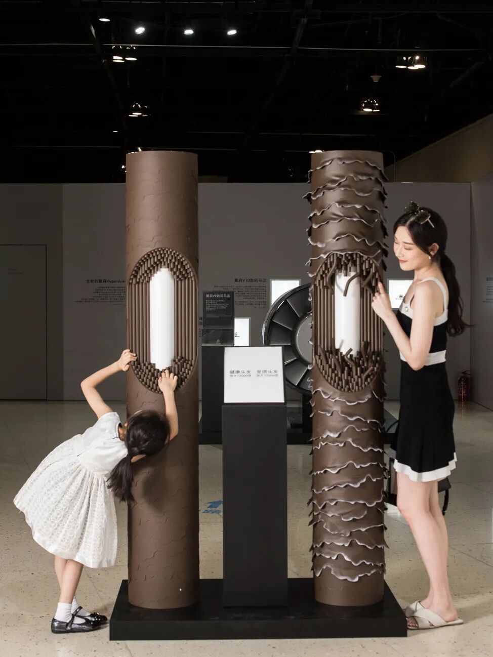 在头发实验室,你则可以看到健康发丝和受损发丝的巨型头发模型。