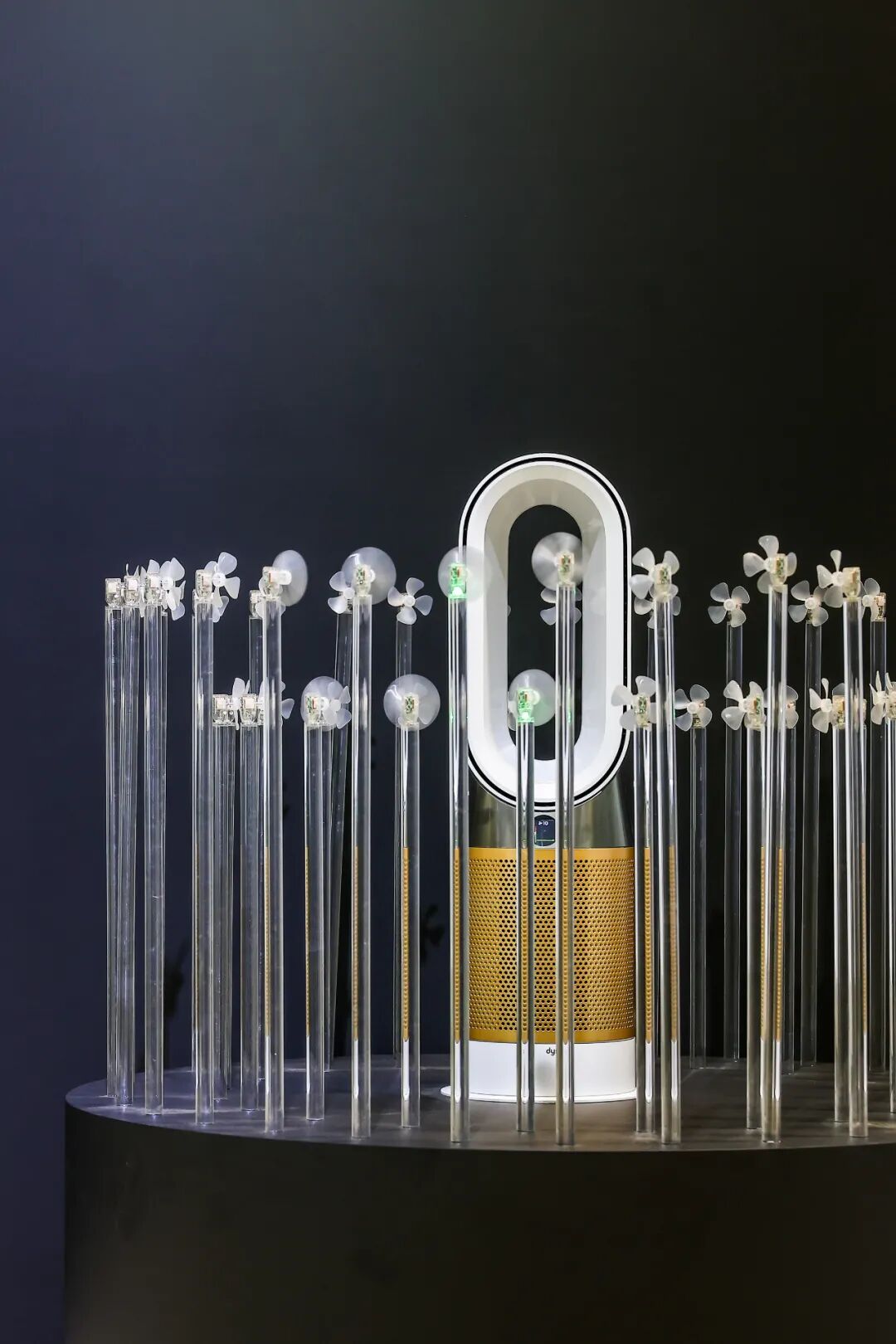 发光风车装置通过可视化的方式,让大家直观感受戴森风扇350°旋转所产生的气流,小朋友被随着气流发光的小小风车吸引得目不转睛。