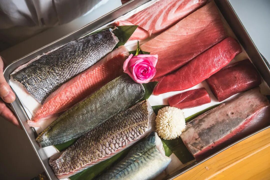 从北海道空运来的的当季新鲜海产,不到36小时直达餐桌,保留了食材原本的风味。鱼生整齐地码放在盒子中,不定期还会上演蓝鳍金枪鱼解体秀(我们就遗憾错过了),好在当天运气还不错,遇到了不少料理长的拿手好货~
