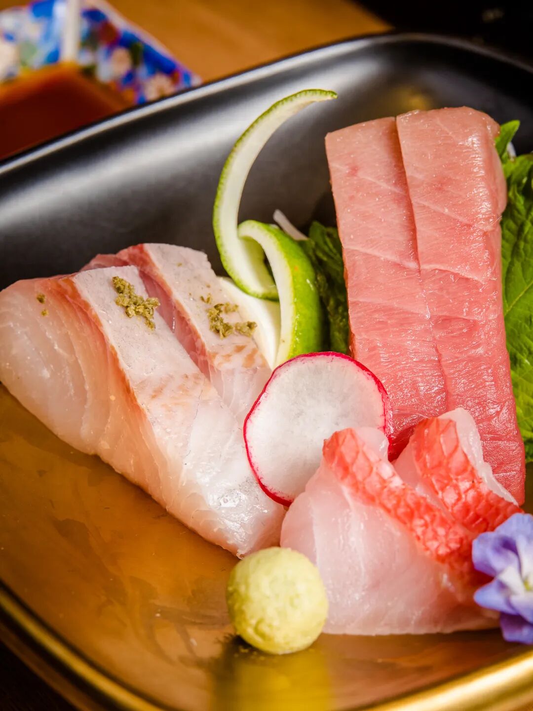 这一份刺身,质量和出品都是上等,鰤鱼和金枪鱼大脂切片毫不手软,每一块都超厚实,丰润的脂香再口中炸裂,是无与伦比的满足感。而泛着油亮光泽的金目鲷,爽脆中带着鲜甜。