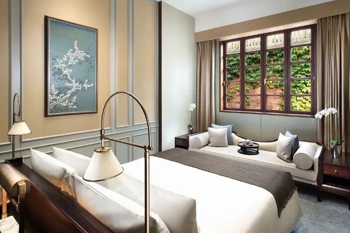 作为上海市区唯一的全别墅酒店,踏入嘉佩乐的那一刻,仿佛进入了另一个世界。墙外市井,墙内静谧。房内的设计融合了经典中式元素和19世纪法国风情。别墅顶层还有一个露台,午后与三两好友在露台上喝喝酒聊聊天,大好时光这样消磨才不算浪费。