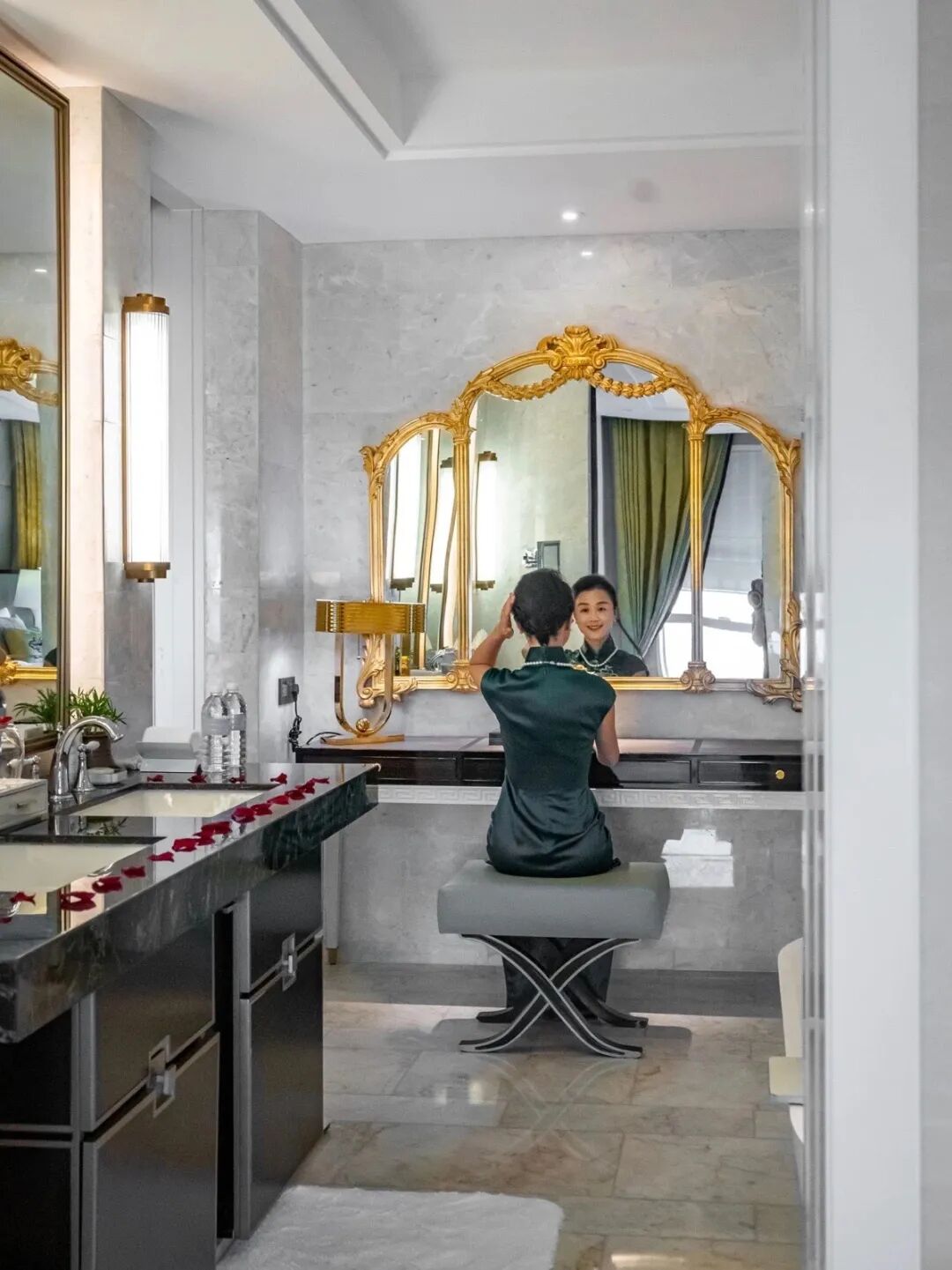 卫浴空间面积与客房不相伯仲,极其宽敞,采用双洗漱台、干湿分离的“度假标配”设计,还为女性客人准备了专属化妆台。住进去,都不想出门~