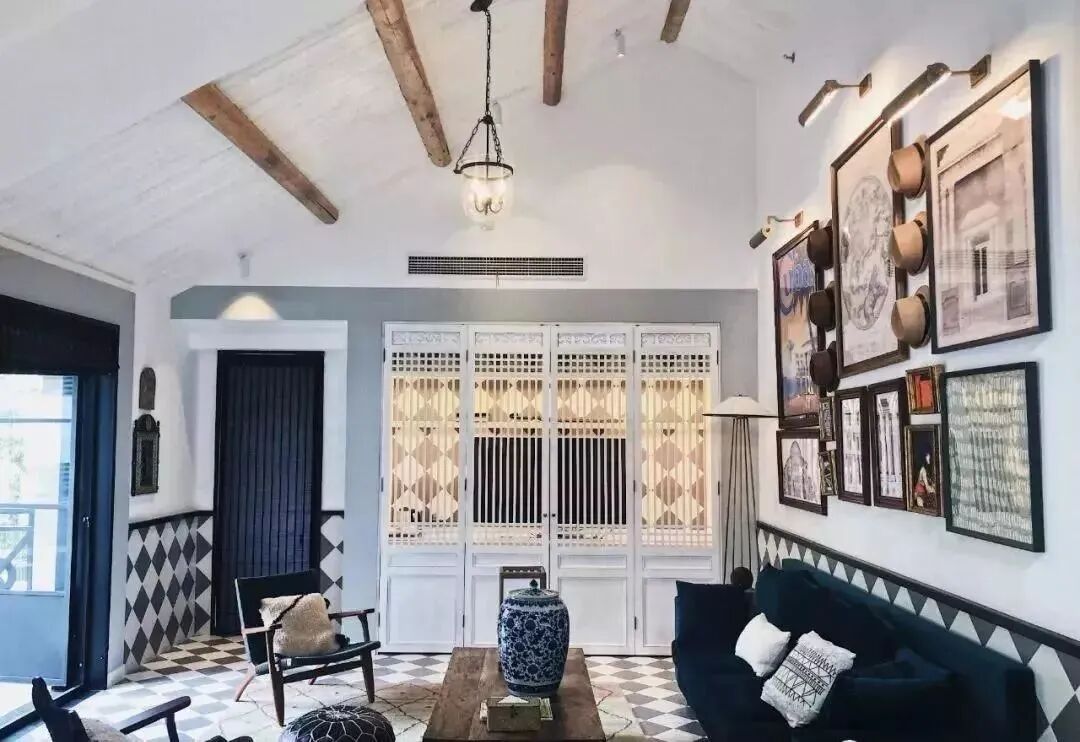 同时,又大量利用了一些法式元素,比如壁炉、马赛克地板、编织木椅等,烘托出浓郁的氛围感,让人身临其境。尽管如此,屋内的家具、灯饰和摆设都绝不重复,可见民宿主人和设计师花了不少心思。