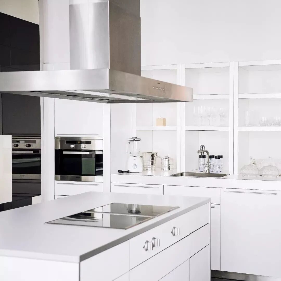 宽敞的会客厅简约而明亮,配备厨房与书房,霸道总裁的标配。特别喜欢开放式厨房设计,白色的厨具显得特别明亮,餐具都是银色的,质感很棒。