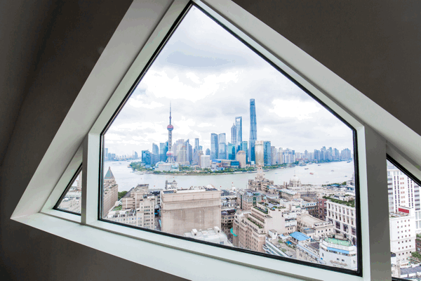 餐厅的三角窗也是绝佳的摄影机位,陆家嘴三件套和外滩沿线的景致,都被收缩在方寸之间。除此之外,藏在29层的ROOF顶层酒吧,360°俯瞰浦江两岸全景,同样美到心坎里!