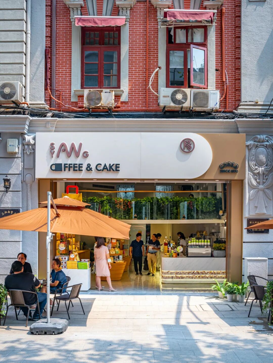 一楼还开辟了咖啡区域,从意式浓缩到各色茶饮一应俱全。左边的玻璃柜台里还有超多可爱的甜品,做成猫咪形状的桔子蛋糕,奶香酥脆的蝴蝶酥,清新的哈密瓜酥,样样都想让人打包回家。点杯咖啡再配上几块宁式点心,就是一顿中式下午茶。
