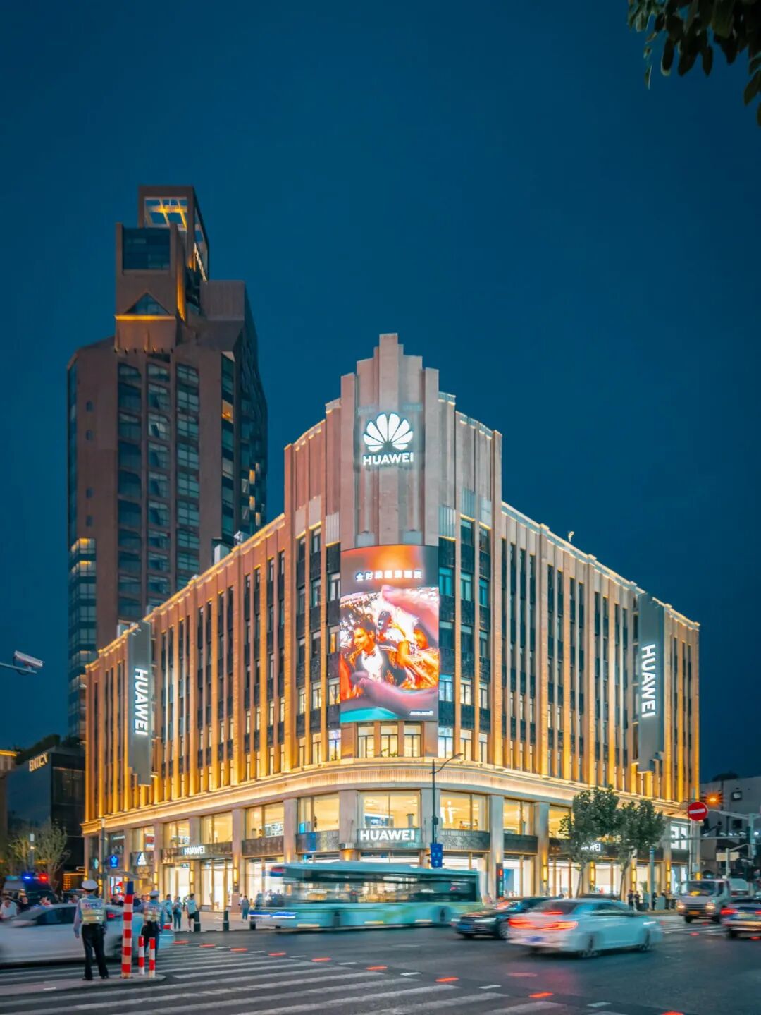 华为全球旗舰店也是新街区的一大看点,外立面保留了南京大楼的原貌,富有时代感的墙体与现代潮流的内部,形成奇妙的视觉反差。入夜之后,有了灯光的加持,效果更是惊艳!