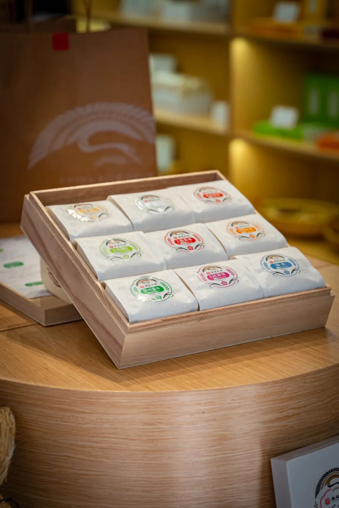 店里一切全部都和米相关,精品大米被包装成了不同大小的礼盒,还有米浆饮品,大米冰淇淋,大米面膜,大米护手霜,甚至大米福袋,谁说老字号不懂年轻人!