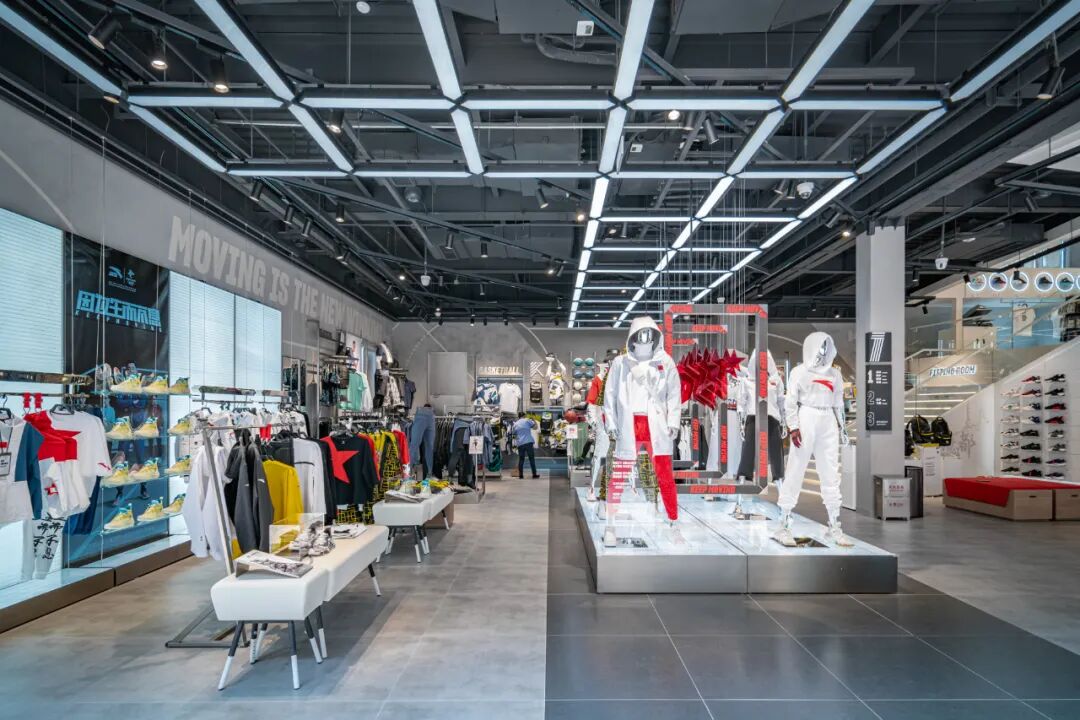 奥运旗舰店占据了两层楼,空间设计简约大气,从鞋品到运动服装,货品种类很是齐全,如果是你是安踏迷,别错过这家店哦~