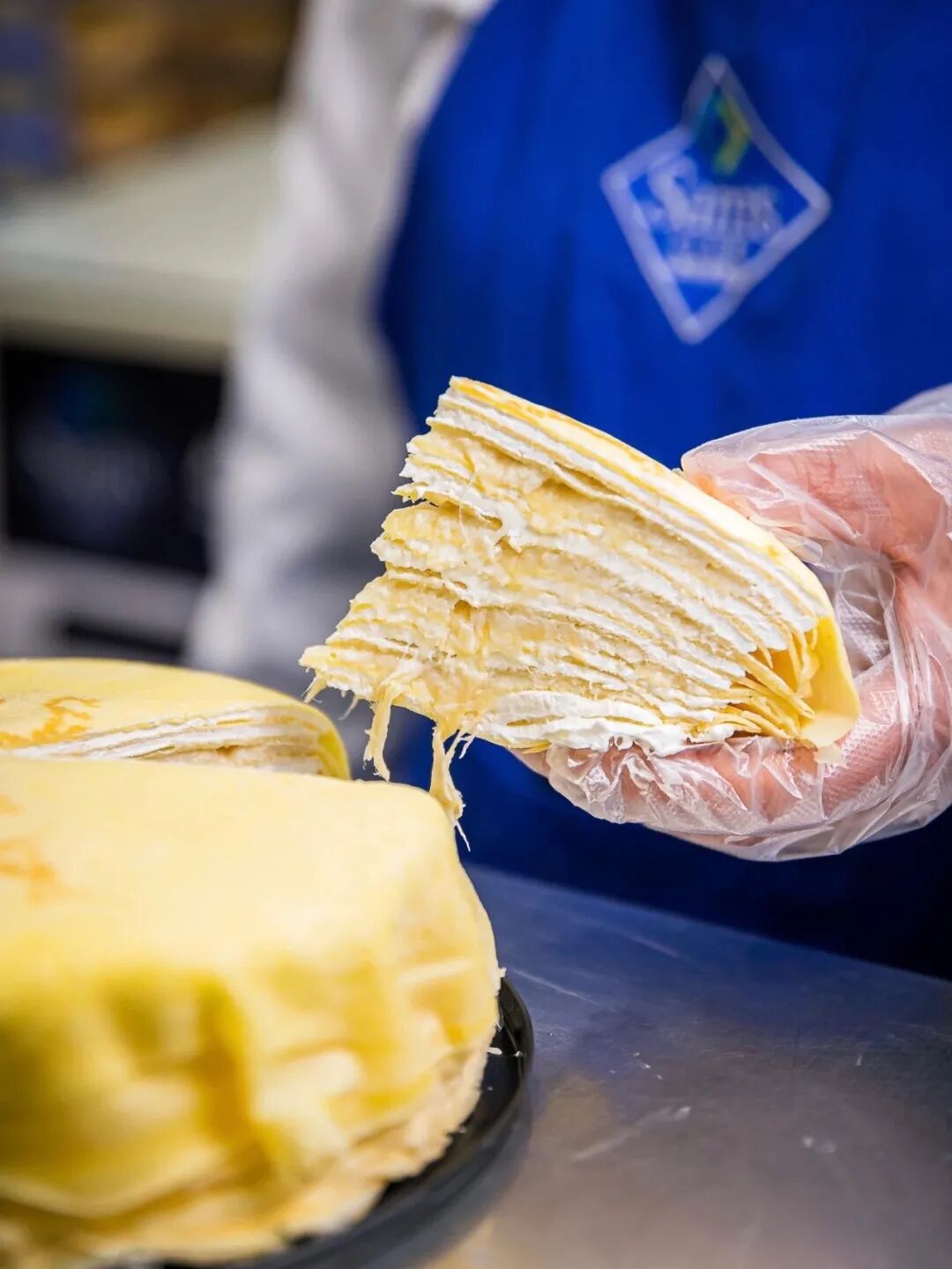 来到山姆,错过了这儿的榴莲千层,那可就是“白来了”!蛋糕用料十分讲究,马来西亚榴莲肉、法国天然淡奶油,软韧的皮子一层层将其包裹,口感细腻,味道特别香浓。重点是88.8元就能收获一整个,比起动辄几十的大牌切块蛋糕,实在划算。