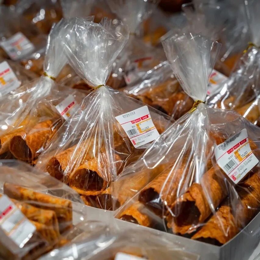 到了城超,必买的就是网红手制蛋卷,甚至有顾客每次都是为了蛋卷专程跑一趟,档口日常都有超高人气。现场手工制作的蛋卷,香气直逼鼻尖,香香脆脆,奶味十足,不自觉就能吃完一整袋。