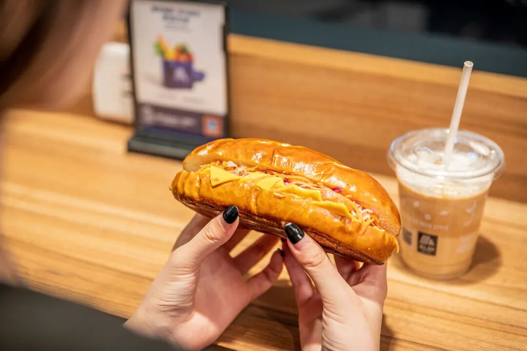 奥乐齐的美食工坊,从现烤烘焙到现磨咖啡,承包魔都人一整天的精致生活。当然,绝不能错过德式热狗,现烤面包包裹住热狗肠,奶香、肉香混合,搭配少许辣酱,浓郁丰富的口感让人欲罢不能。