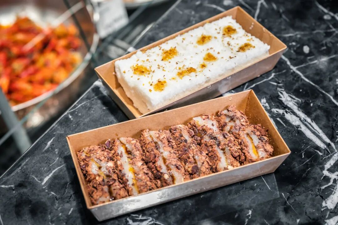 来Ole'的第一件事,当然是冲向烘焙区,因为他们家出品的面包,完全不输甜品专门店。网红慕斯白玉卷,糯米皮冰凉Q弹,里头是蛋糕胚和奶油,口感绵软,甜度也控制得刚刚好。最近上新的蒜香奶酪包,咸香酥脆,推荐你一定要试试看!