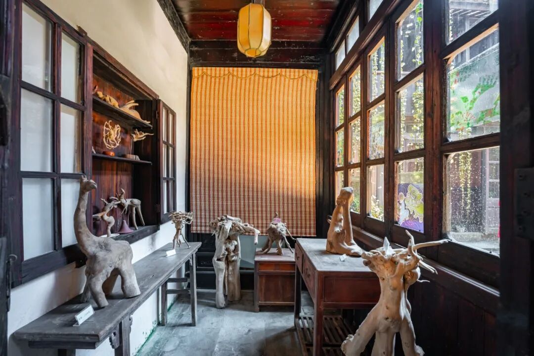 另一侧的雕刻室大大小小陈列了30多种木雕、石雕作品,大的有一米多高,小的只有巴掌大,每一个都惟妙惟肖、栩栩如生,不得不佩服古代工匠师傅的精湛雕工!