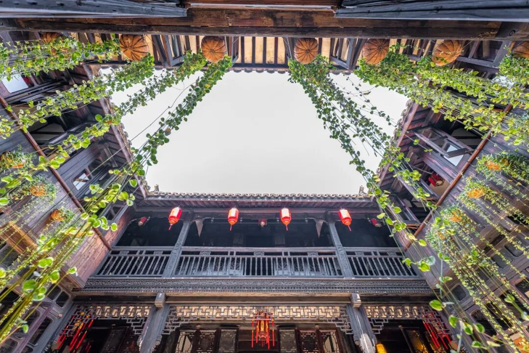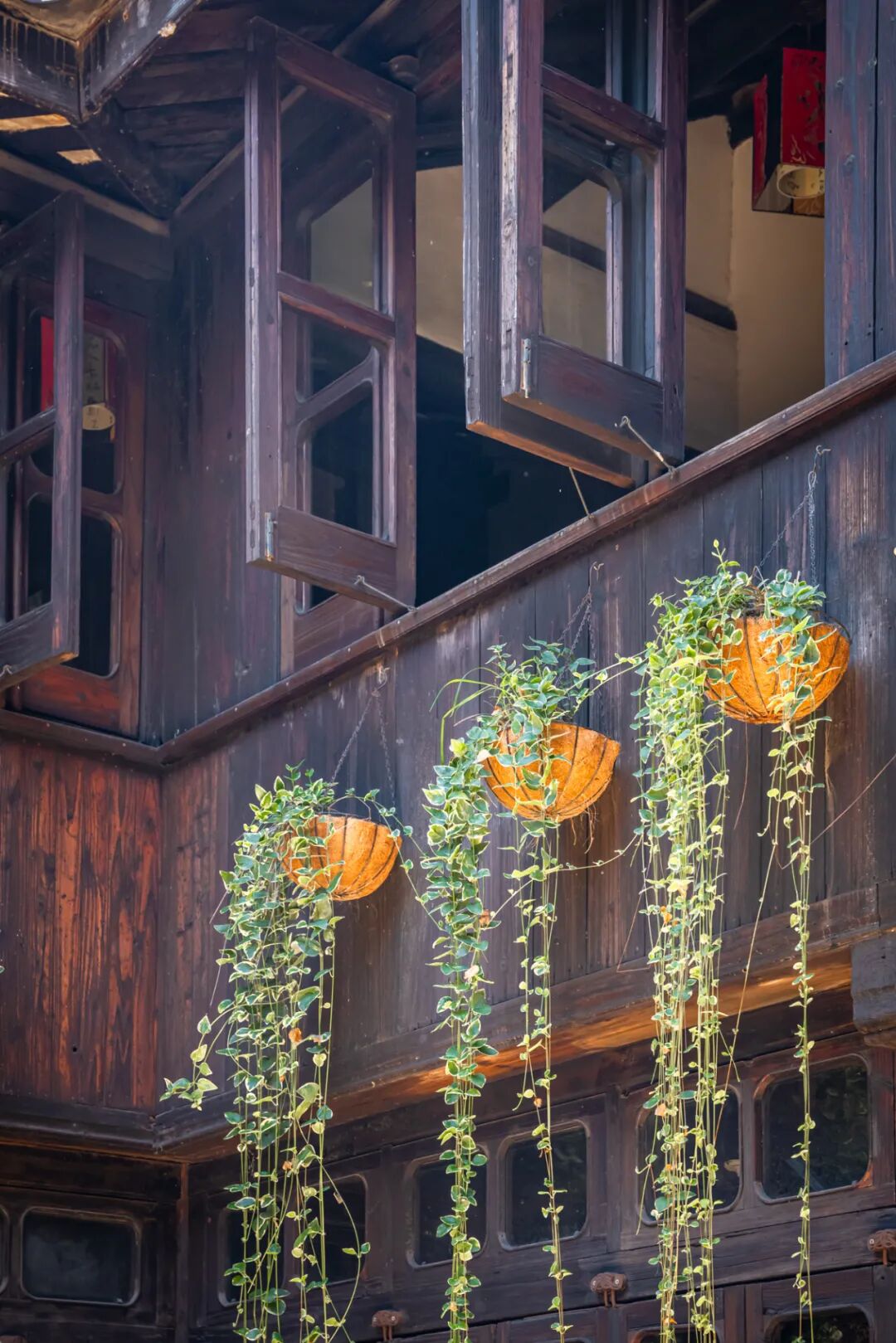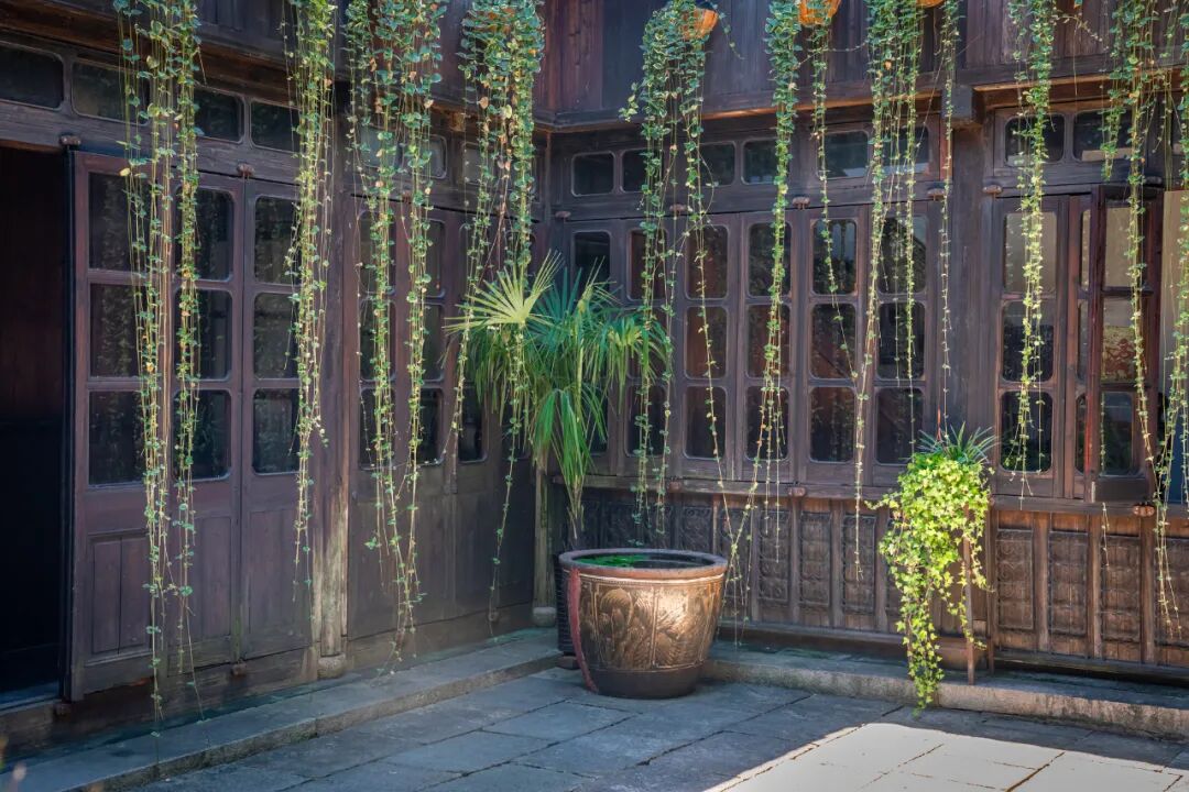 中庭垂落着长长的绿色藤蔓,意境满满,“庭院深深深几许”形容的大概就是这般景象吧!