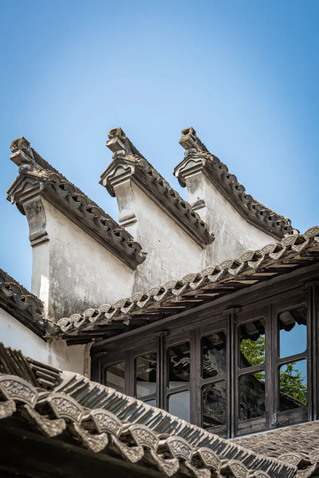 砖墙立柱、穿斗式木构架,榫卯组合、圆木柱承重墙,雪白的墙壁、黛青的小瓦片、翘檐马头墙......整栋楼朴素淡然却不失大气、尊贵和精细。