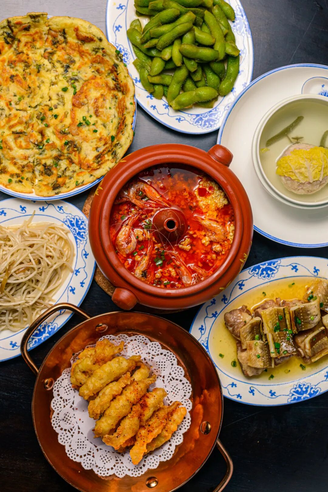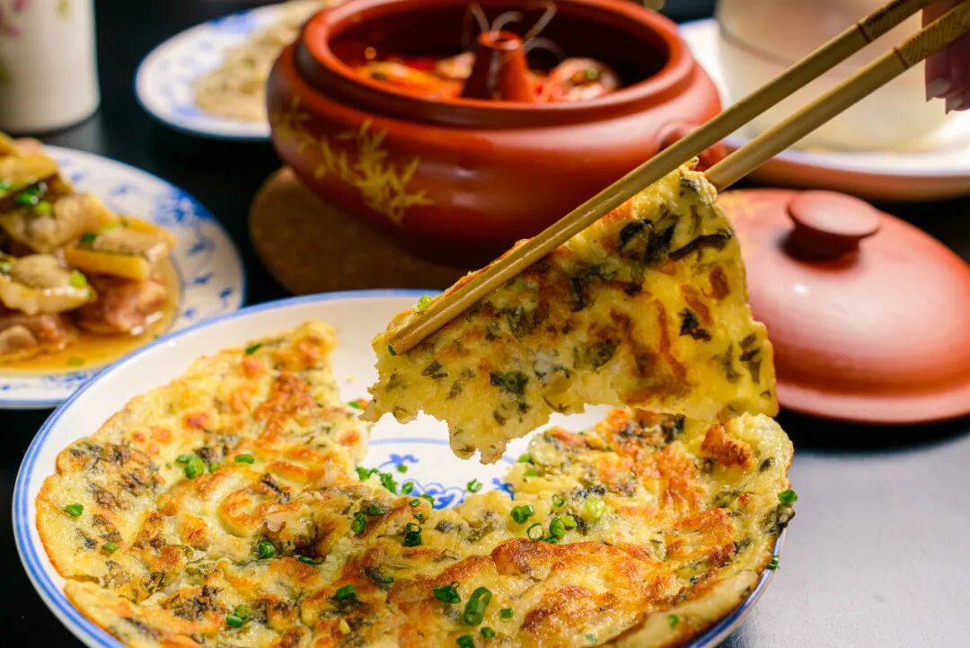 最后的烙饼,千万不要因为它朴实的外表就错过了它,混着紫菜、虾皮、九肚鱼的蛋饼绝不是寻常之味,给熟悉亲切的家常菜肴增添了不少曼妙。