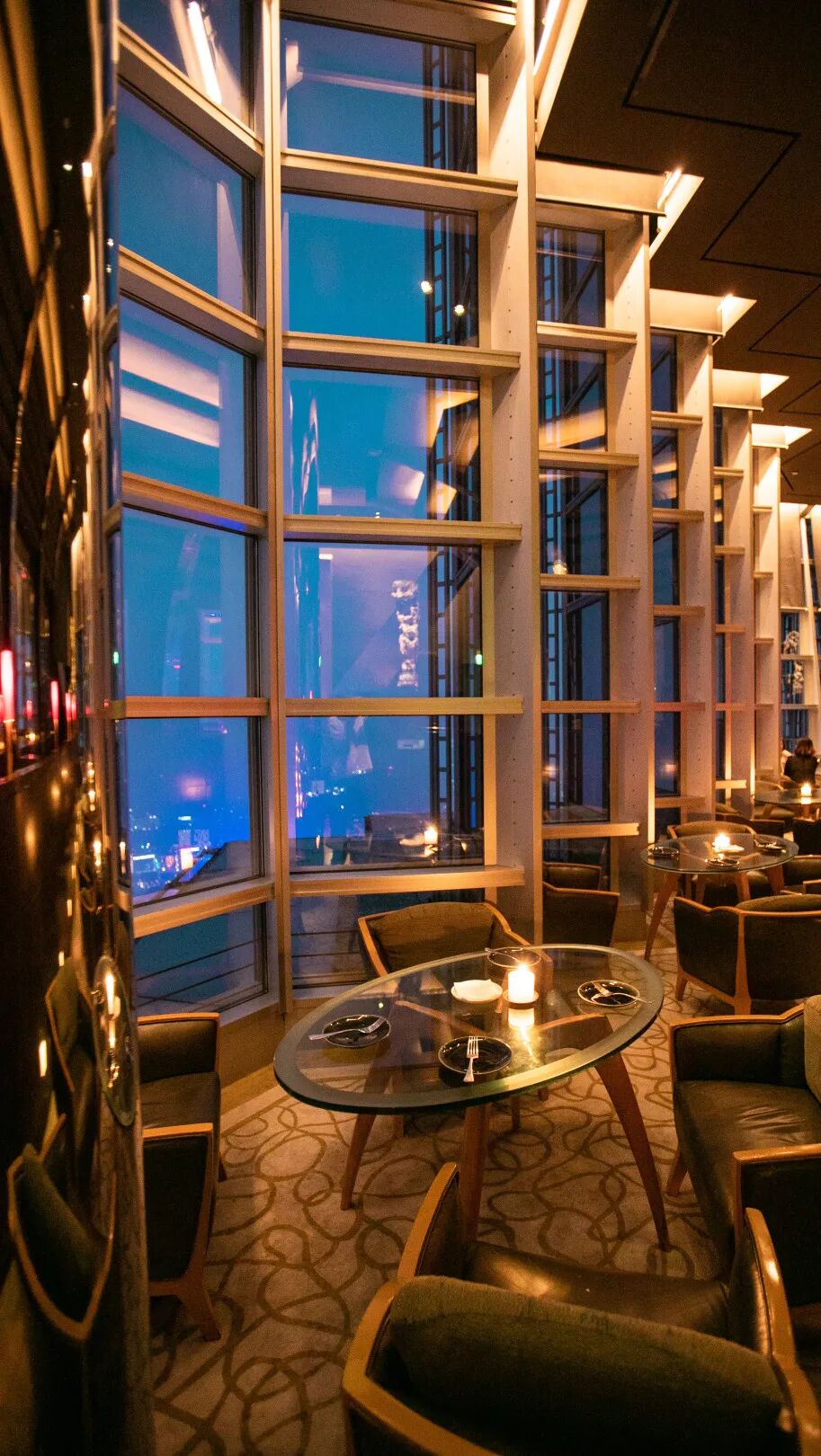 这个位于“曾经中国第一高”金茂大厦君悦酒店87层的酒廊,海拔近400米,占据了酒店一整个楼层,能360°全方位俯瞰城市景观,是当之无愧的“空中酒廊”。