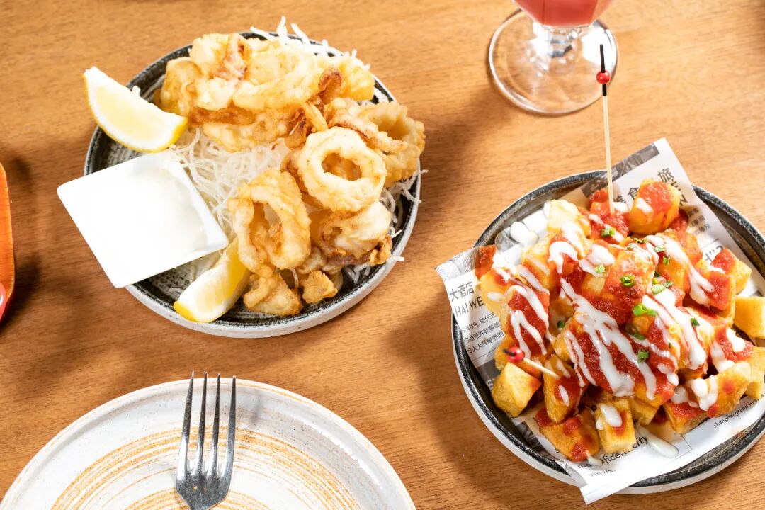 如果爱炸物的话,这两道经典菜也必须列入list。一口一个的弹嫩鱿鱼仔和香酥炸土豆,趁热吃相当过瘾,而且一定要搭配蛋黄酱、番茄酱一起吃,酱汁简直是点睛之笔!