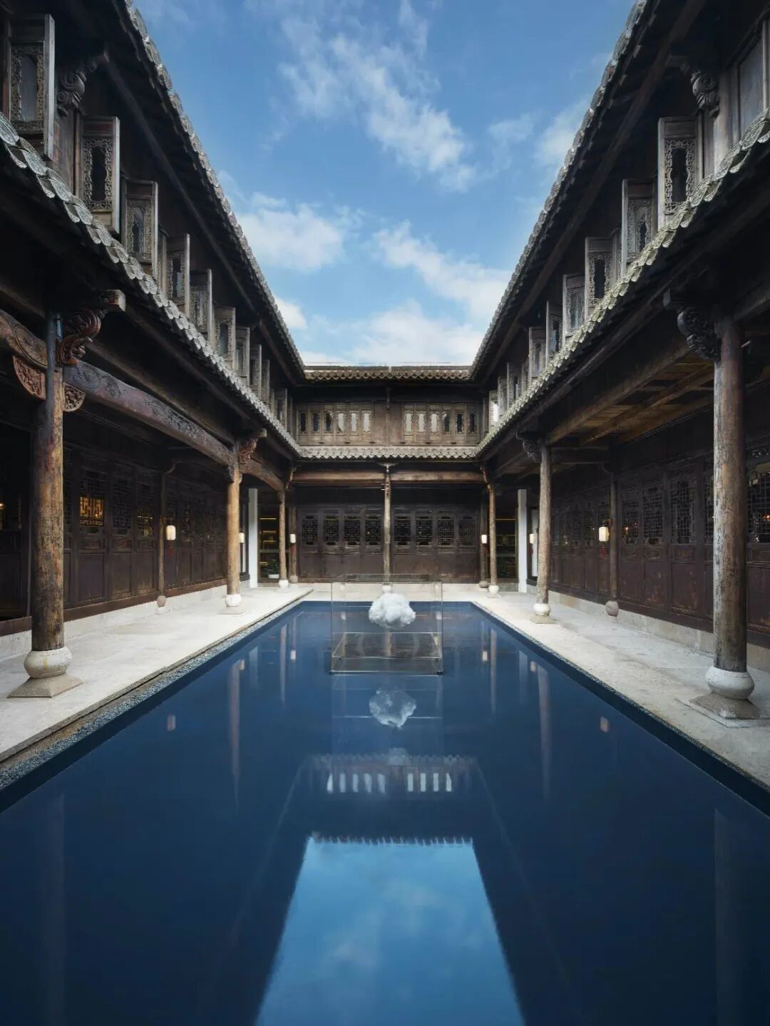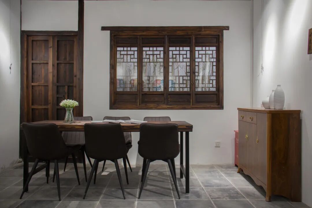 管氏宅修旧如旧,从浙江请来的老木匠用古老的校蔑、传统的手工雕花方式参与修缮,岁月的痕迹依稀可见,青砖瓦黛、手工雕花棱角,细节之处美到勾魂。连接一进与二进的中庭还用心地铺陈了鹅卵石,恰如积雪一般,与“映雪”相呼应,古朴气息扑面而来。