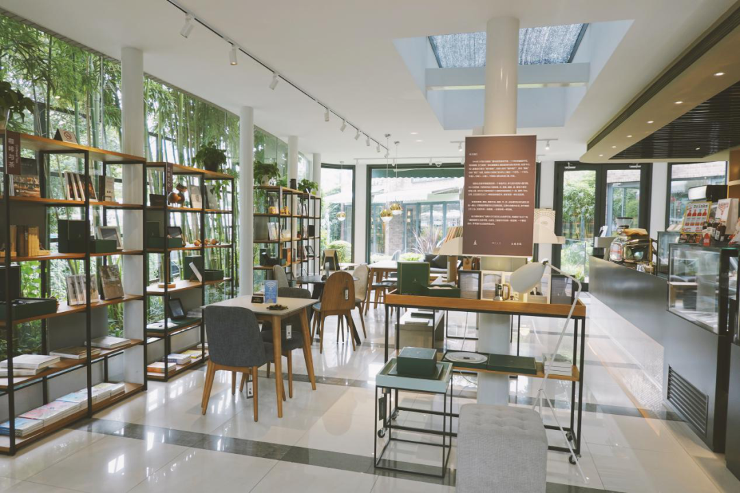 城市不眠书店选址在远离城市喧嚣的金桥区域,像是世外桃源般的存在,静谧低调,遗世而独立。