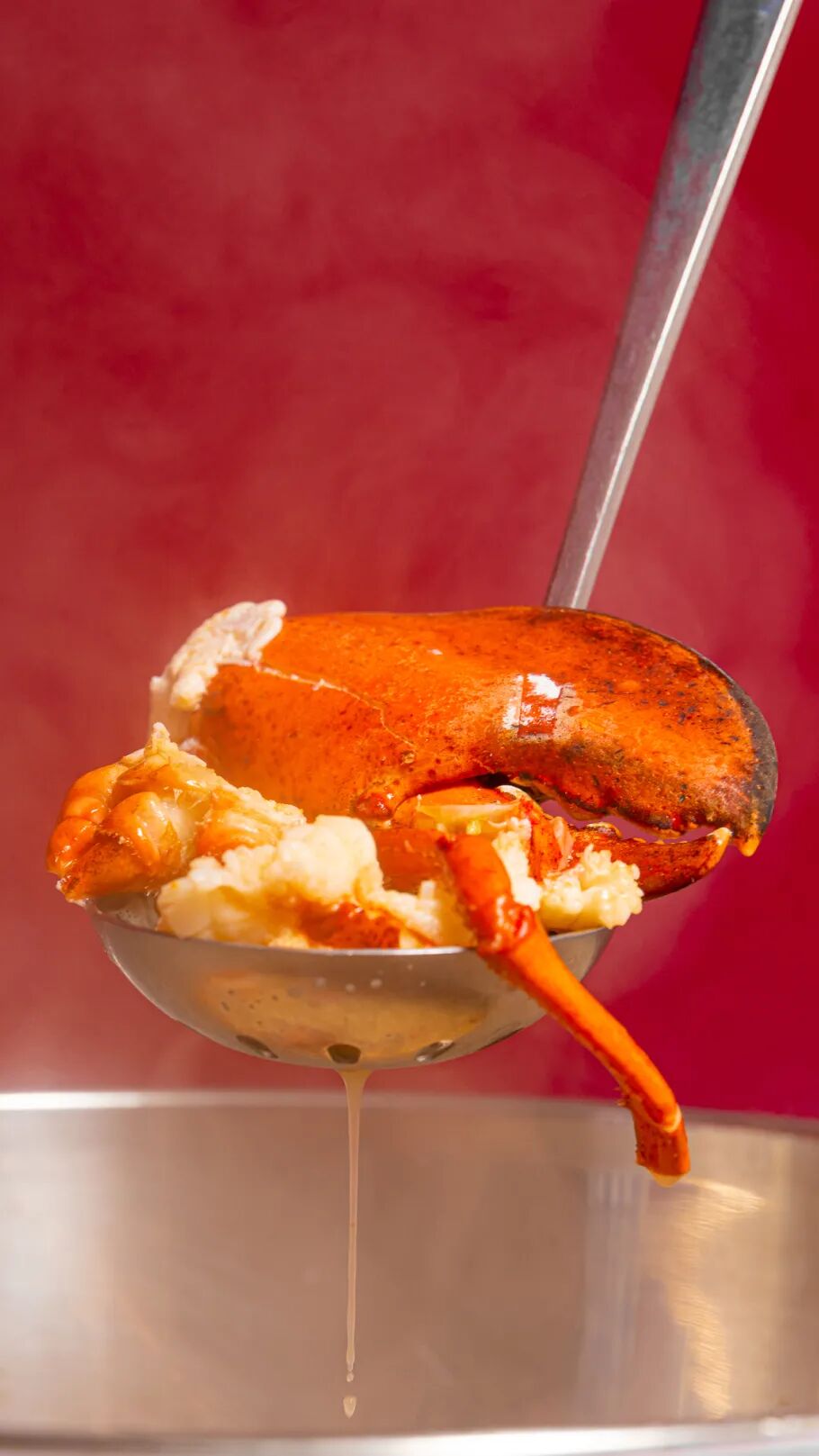 接下来呈上的波士顿龙虾锅,给足你用餐仪式感。橙黄的汤底用新鲜草虾熬制而成,不添加任何佐料,仅靠虾肉本身的鲜美调味。
