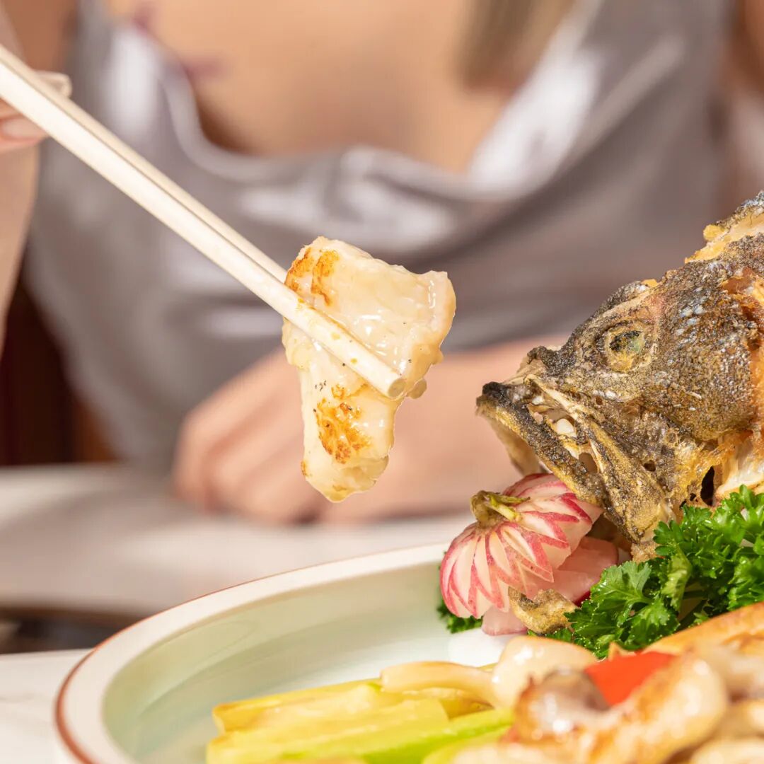 龙趸鱼肉肥厚,胶质部分微微融化于舌尖,带来别样的脂香,就连配菜芦笋、白玉菇也十分出彩。