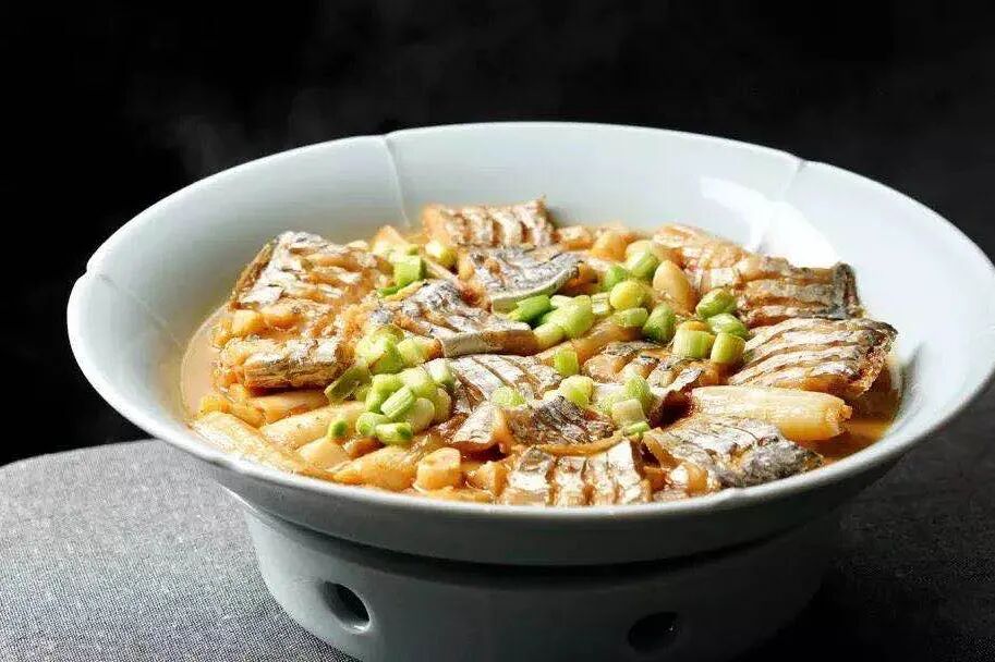 主打时令美味的新荣记,会根据季节更换菜色食材,比如我们就尝过鲳鱼烧豆面,丰腴的东海白鲳鱼搭配Q弹豆面,鲜美滑爽。