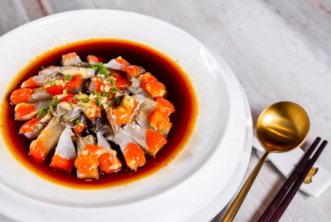 甬府尊鲜与甬府的食材品质相当,既能吃到招牌十八斩、白蟹炒年糕、喷香芋艿羹等等经典菜,还有老店所没有的独家新菜,如火焰佛跳墙花雕鸡,同样是经典的宁波口味。