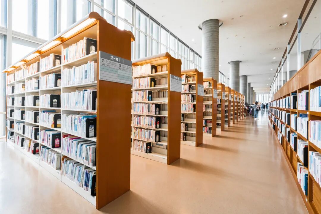 整个图书馆分为地下两层和地上六层,简约大气的六面体造型,仿若一座巨大的书柜,肆意徜徉在书籍的海洋中。