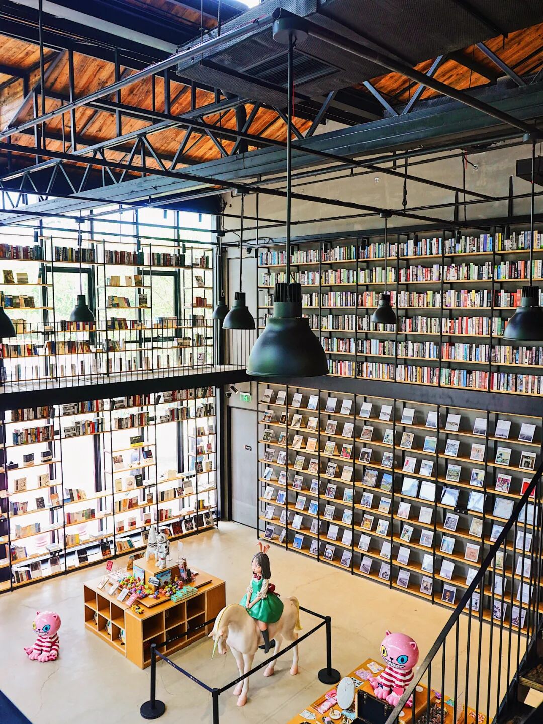 城市书店内部饶有ins感,老厂房工业风的设计特别抓人眼球,loft两层结构带来满满的神秘感,正对入口的是一整面高大的书墙,给人强烈的视觉视觉冲击。书店藏书丰富,涵盖各个热门类别,有关美学、艺术的小众书刊更是特色十足。