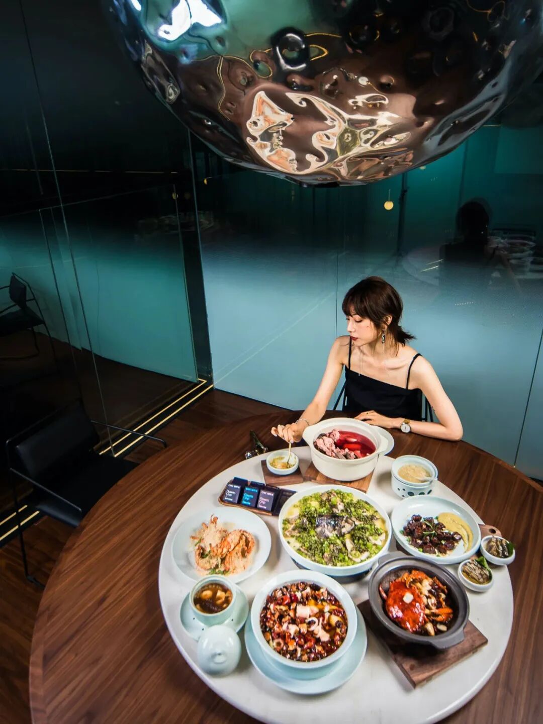 源起福建九龙江的CHIC1699远洋私厨,在厦门开业5年间收获好评无数。今年来到魔都,选址在浦东华润时代广场,带来设计感十足的酷炫空间。步入其中,满眼尽是金属元素,与印象中的闽菜馆截然不同。C位的金属圆球,更是成了网红打卡点。
