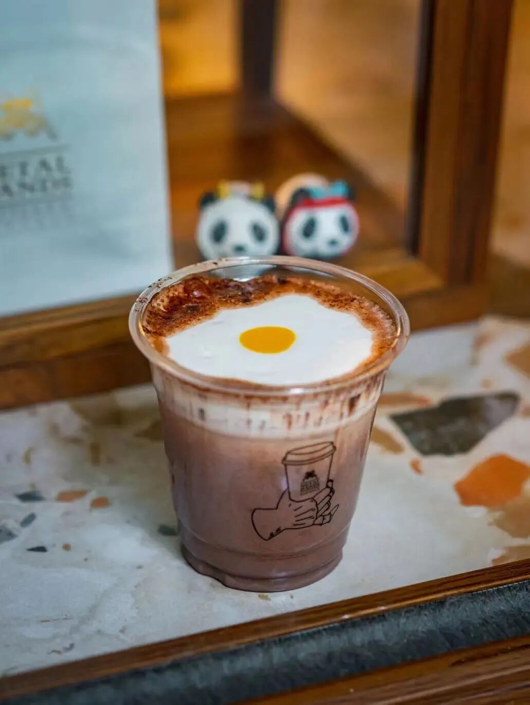 生姜荷包蛋,最顶层的图案并非拉花,而是用南瓜粉和细密的奶沫制成的翻糖,尤其细腻~咖啡入口也很柔和,只有细品到后面,才会品味到生姜的回甘,一点也不冲!