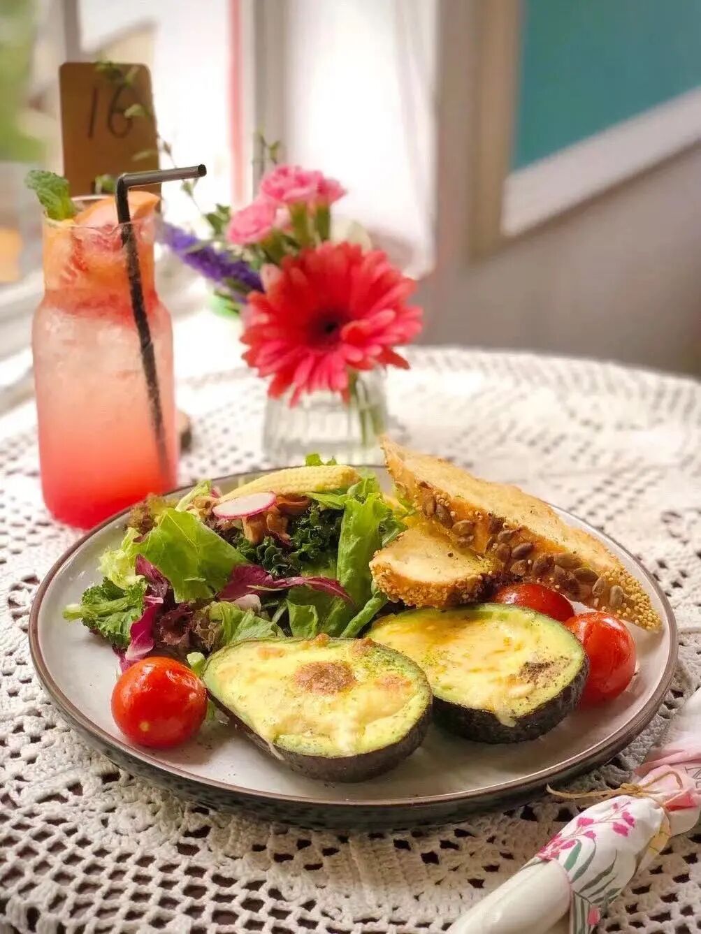 一楼为烘焙甜点区,二楼则是西餐厅,空间宽敞,大面积的玻璃窗映照着窗外的绿萝,遇到好天气就更加出片了!