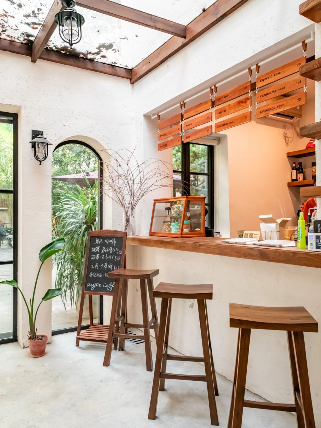 店如其名,室外花园的部分让人无比惊喜,每颗树木都经过了主理人的精心打理,天气晴好的时候很适合窝在米白色藤椅上晒太阳。站上二楼露台,便可以觅得不远处的市井风光,同时又仿佛身处一个安静的秘境,好不快活。