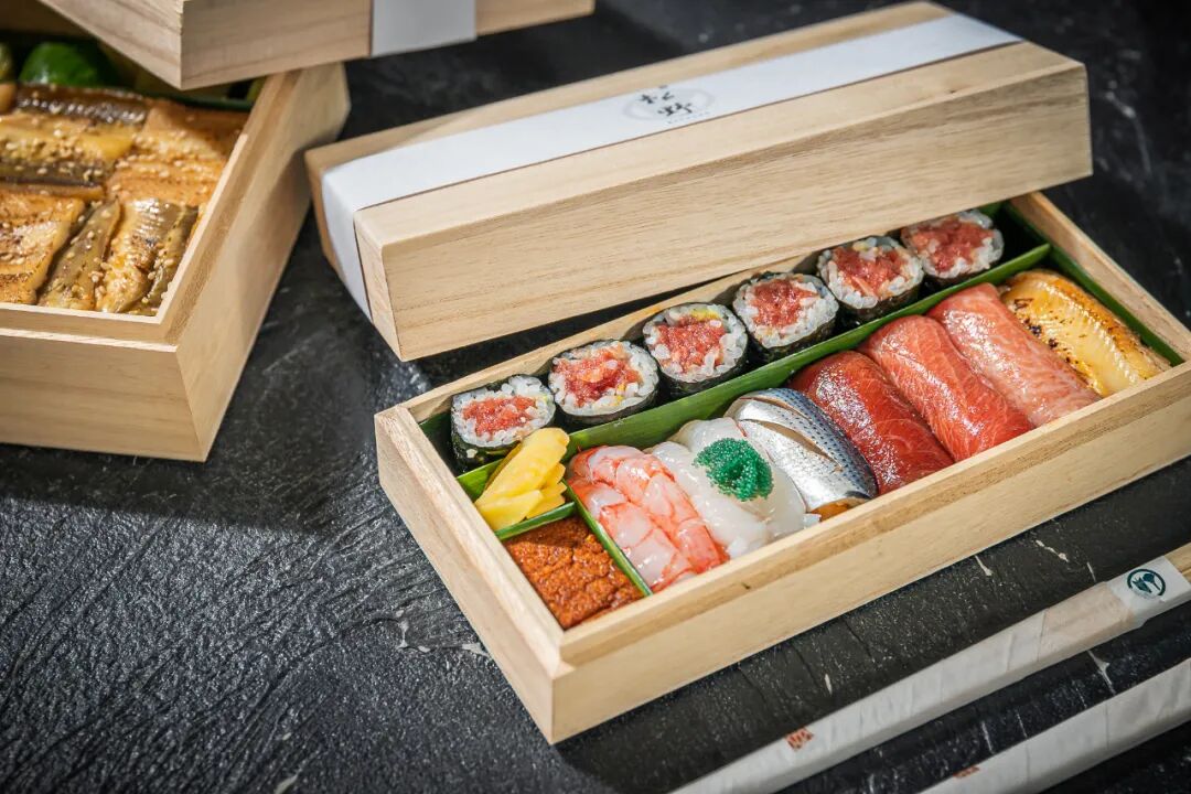 强烈推荐的星鳗丼有满满一盒,让你在家就能吃到高级日料店的烤星鳗!寿司Set一盒里有7枚寿司、6枚细卷,有北海道的整只牡丹虾寿司、配上新鲜虾籽,也有赤身、中脂、大脂的金枪鱼寿司,引起极度舒适。