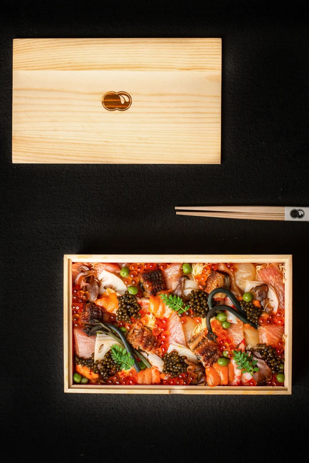 海鲜散寿司便当也是点单人气王,随时令更换的渔获铺满了海胆、大脂、鱿鱼、车海老,还有黑木自己出品的9年鱼子酱,增添香气和滋味的木之芽和蕨菜,搭配熟成3-4年红醋调和的米饭,尽显匠心美学。