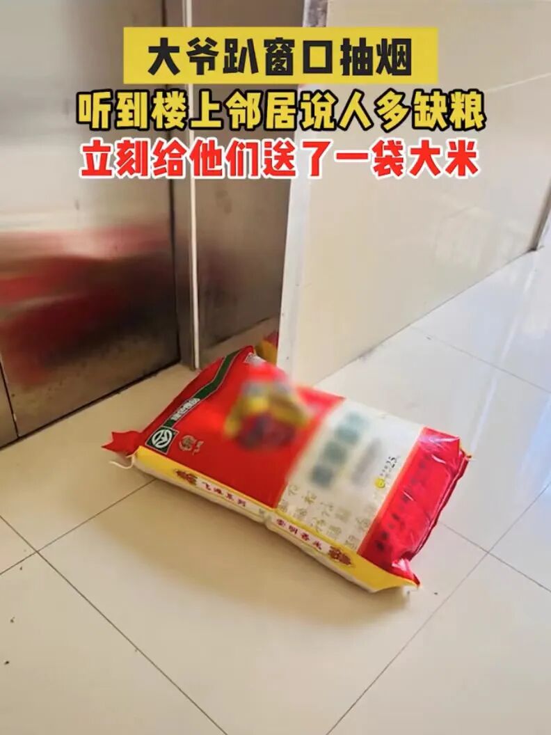 于是大爷将自家25斤的大米亲自送上来,夫妻两个感动之余依旧表示要有偿购买,但大爷淳朴的表示不要钱,邻里之间的帮助是应该的。即便平时素不相识的邻居,在需要帮助时依旧能挺身而出。