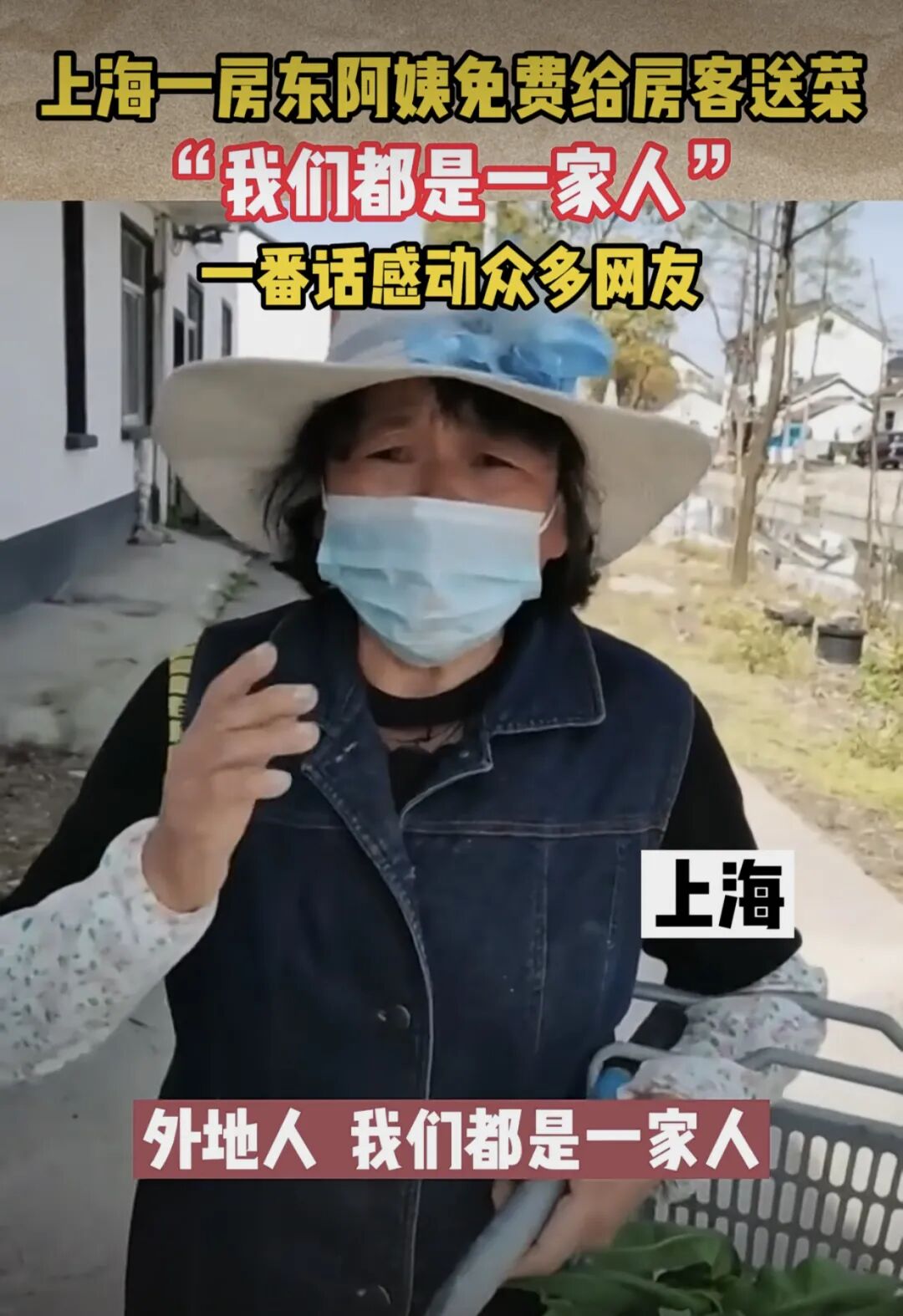 疫情仿佛一面镜子,也能将温暖传播开来。最近上海一位房东阿姨免费给房客送菜,尤其动人的还有她的一番话:“不管是上海人,还是外地人,我们都是一家人。”