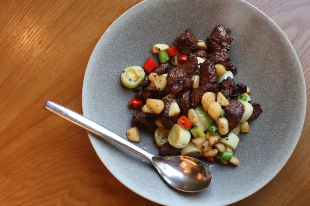 大蒜炒酱肉是我最推荐的一道菜,牛肉非常入味,肉质滑嫩弹牙,咬下去还能感受到存留的汁水。