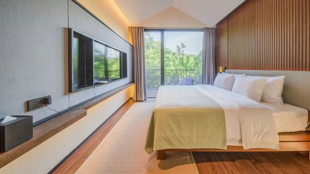 卧室中,或带户外露台、或带小院,闲暇时光坐在庭院中,喝杯茶,听着山谷里布谷鸟的叫声,晒着太阳静静地感受慢时光。