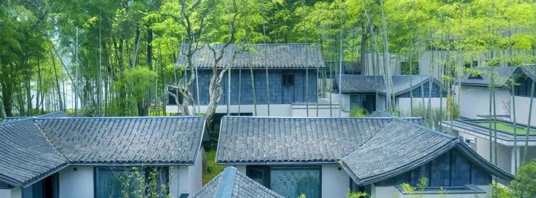 酒店的建筑透着富春山居独有的清雅幽静,犹如一片天然氧吧,一步一景,十分和谐。不对称的人字形屋顶,以合为聚,旨在体现人与自然和谐共存。