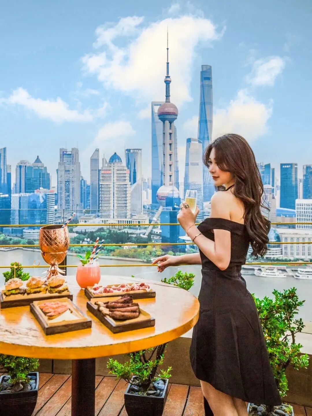 自带浦江两岸绝佳视野的POP露台餐厅与酒吧,同样是沪上名媛的吹风圣地!