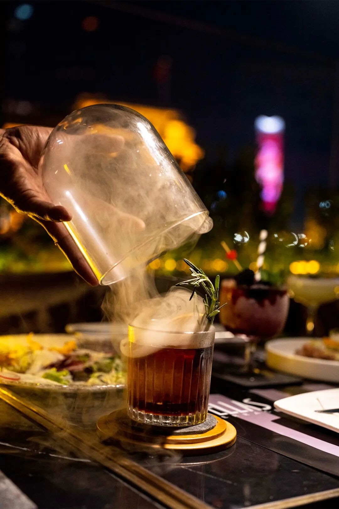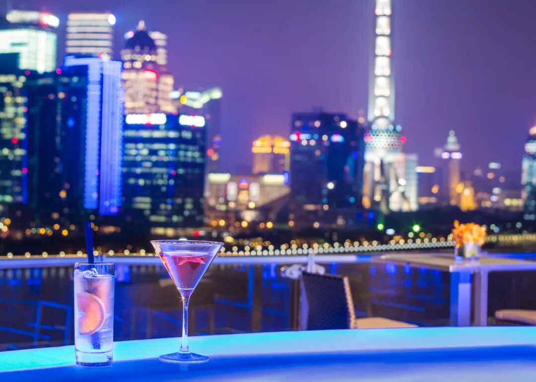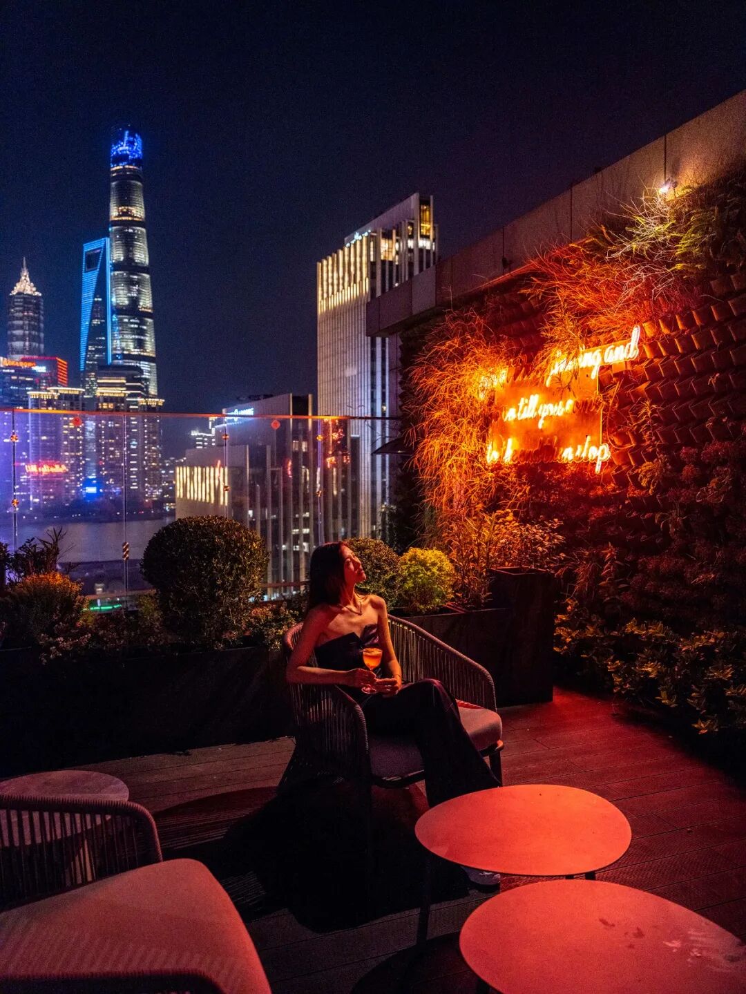 又或者是入夜后点一杯鸡尾酒,一边远眺陆家嘴一众摩天大楼的幻彩灯影,一边乘着凉风感受微醺的愉悦,就是生活的浪漫。