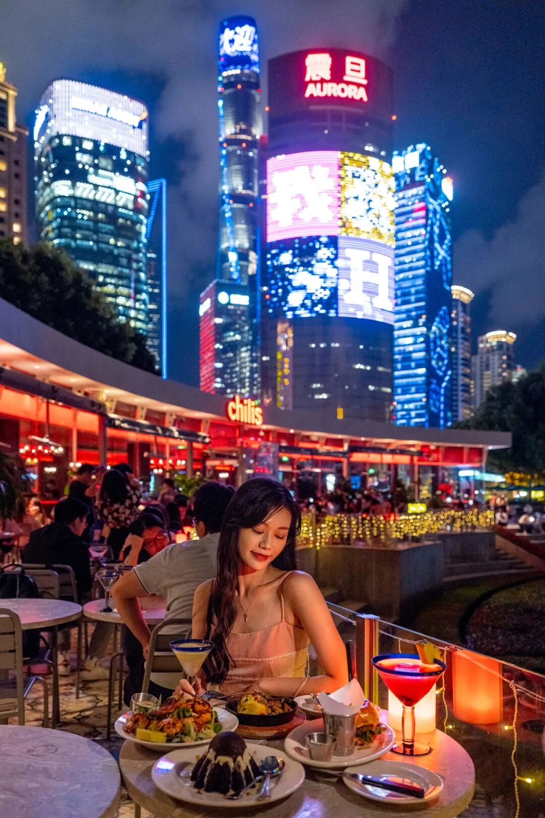 不管什么时间段,这片露台区域都是城中绝佳的用餐地,从下午茶到夜晚小酌,统统都可以这里解决。