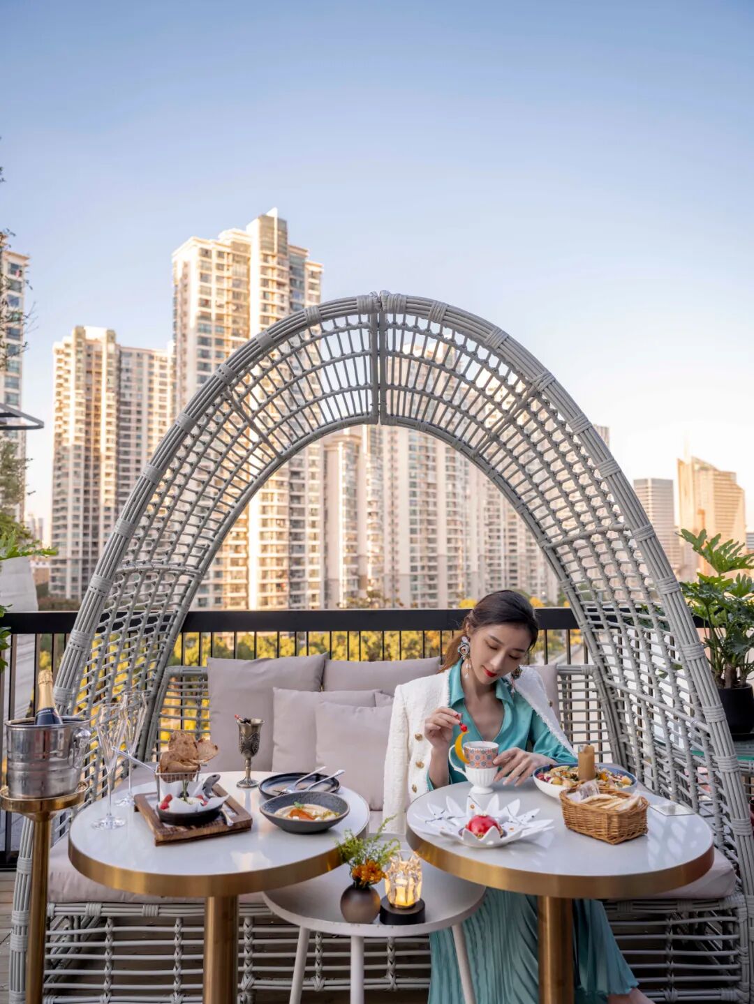 坐拥一片泡泡屋的270°观景露台,放眼望去亦是一道活力阳光的亮丽风景,与清新绿植和清爽白色桌椅营造出惬意氛围,让时髦精足不出沪就能拥有度假好心情。