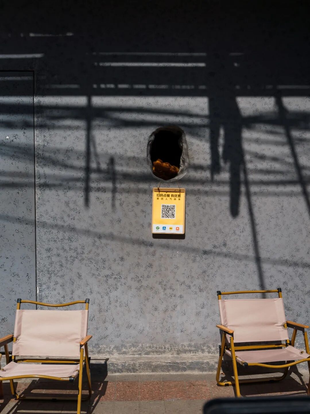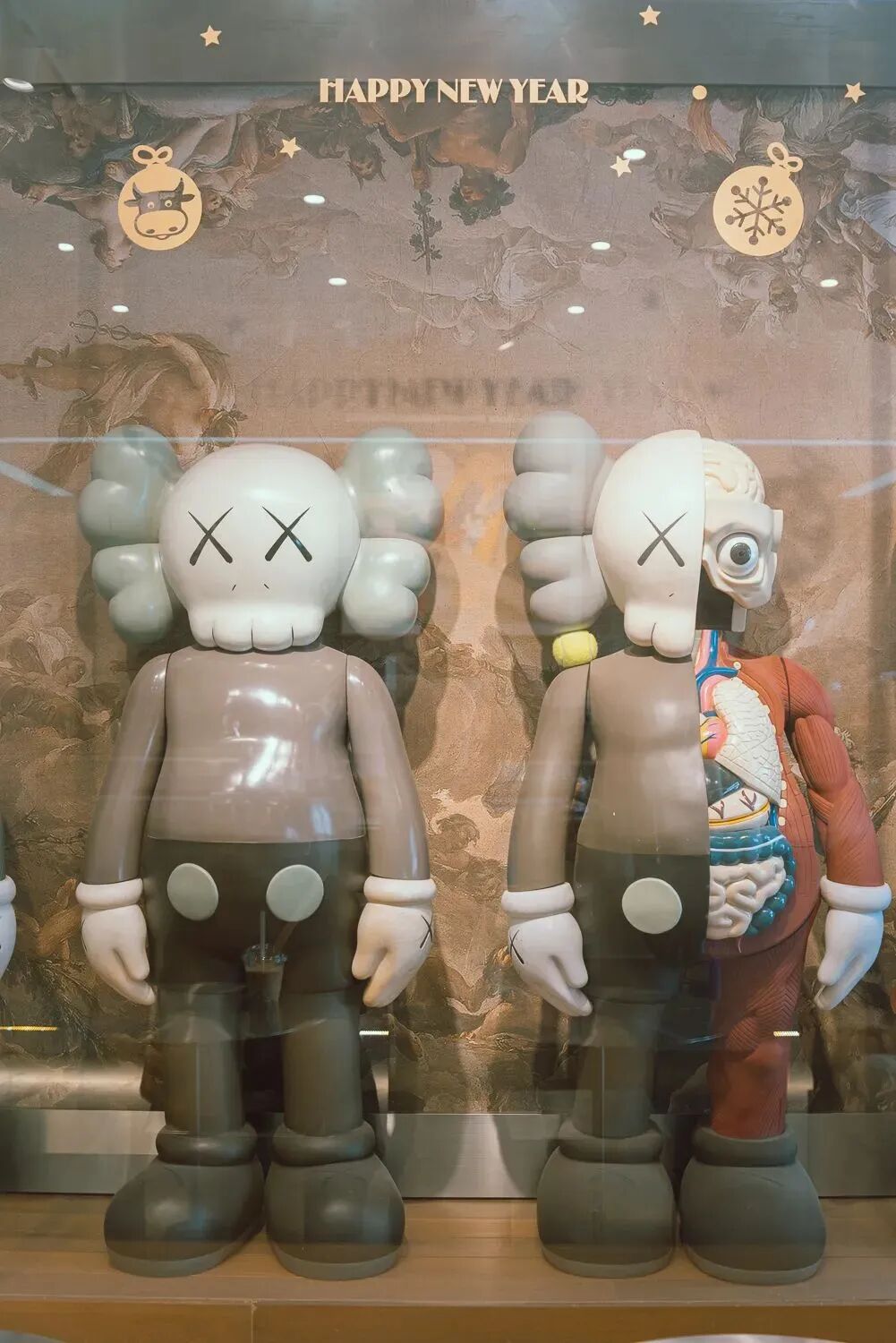 走暗黑系工业风装潢的重生Coffee,藏着一面总价约600万的巨型KAWS墙,奠定了店里的潮流感。搭配着斑驳的沧桑感墙面与不规则地散落于地面上的铜钱,复古国潮在这里激烈碰撞。