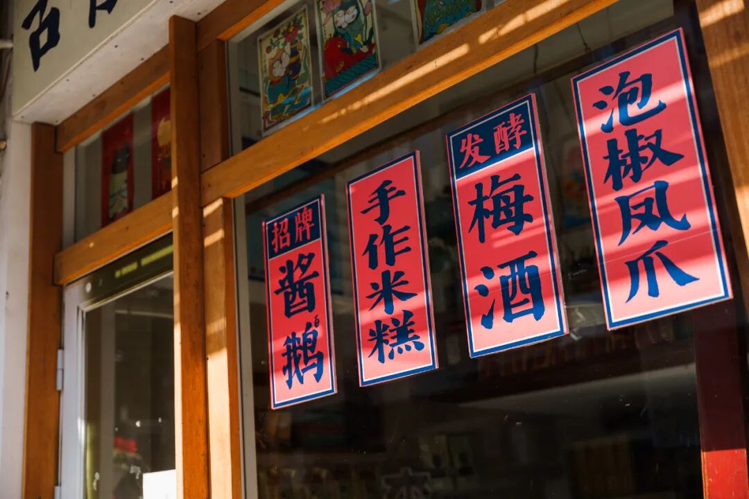 手撕酱鸭、梅菜扣肉、土猪腊肉等肉类应有尽有,还有火锅底料、酸辣粉、老坛酸菜等配料,桂花米酒、梅露酒、招牌每日现煮酸梅汤也必喝,买一杯在路边喝喝吹吹风,好不自在!