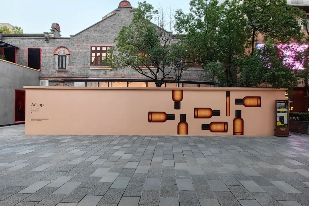 好消息是,我们惊喜地发现了Aesop即将开二店,坐标新天地区域,店铺围挡已被通体刷成淡黄色,一眼就能望见。