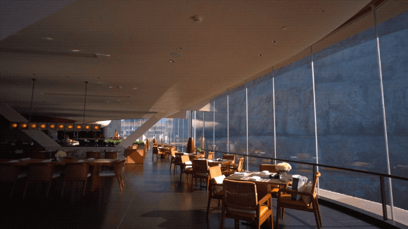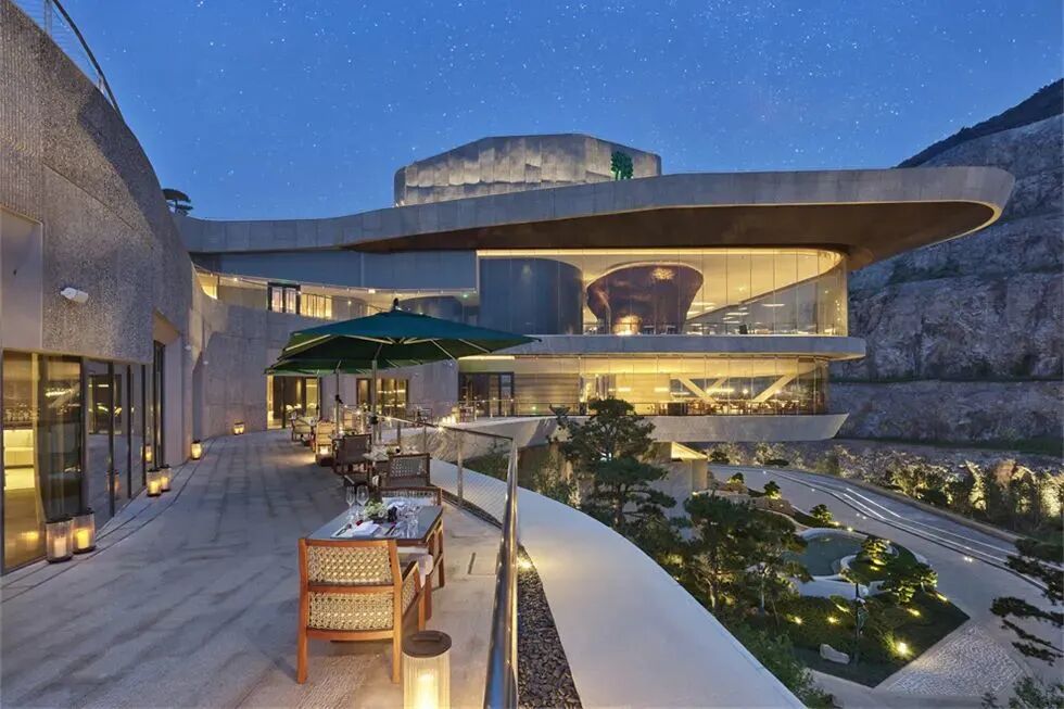 大堂酒廊,可谓这间悦榕庄的“高光之作”,这里的日落美醉人心,将矿谷崖壁和「云池梦谷」景区的美景一览无余。在设计上很有洞穴感,除了2人或4人位的沙发,还有随墙面起伏的座位设计。可以倚靠的墙面与窗外的美景相呼应,更重要的是,随手出片!在这里欣赏日落,享用下午茶,十分浪漫。日暮之后,还能喝一杯日落鸡尾酒,享受属于自己的欢乐时光。 餐厅位于酒店8层,以招牌粤菜为基础,巧妙融入经典淮扬菜元素。餐厅入口处再次诠释设计感。因汤山号称是矿石之源,因此餐厅入口处凹面形态便模仿了汤山形态打造,饰以南京雨花石点缀,中式文化的表达手法多样化传达。![]()